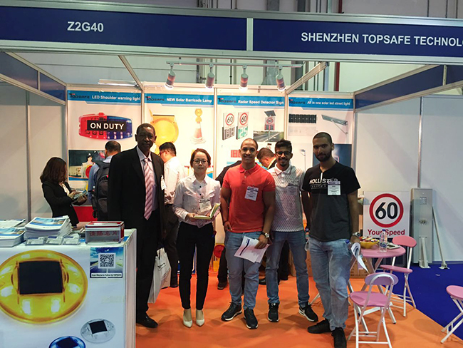 2016年2016年11月13日-15日, 2016年海灣(迪拜)國際交通展在迪拜國際展覽中心如期舉行,公司派出了強大陣容,JAKE, BELLA,Cherry,FRANK我司的展位號為Z2G4,在這次展會上,我司攜帶了最新研發的太陽能路障燈,LED警用肩燈,太陽能一體化路燈,太陽能黃閃燈等產品亮相了本次展會。